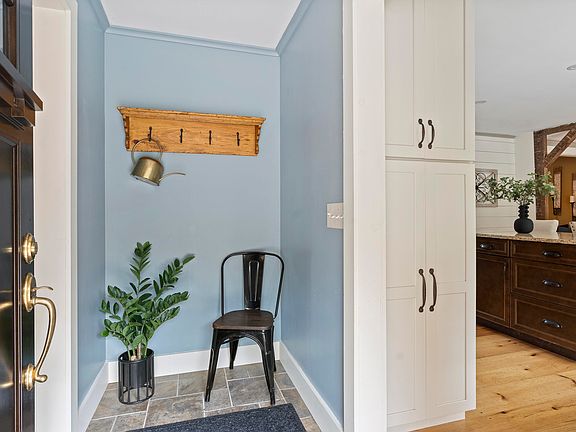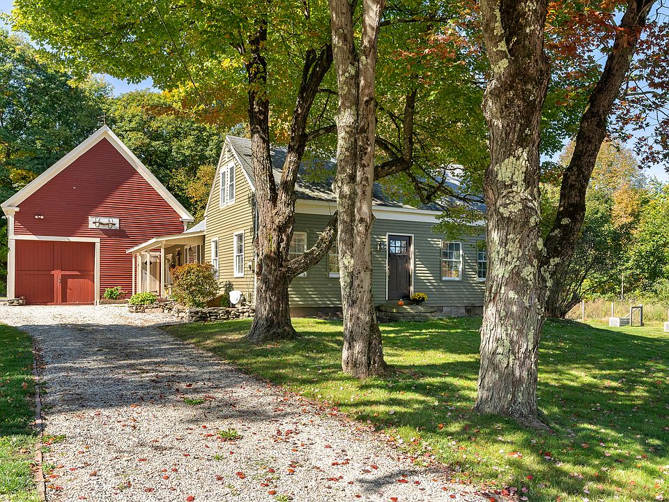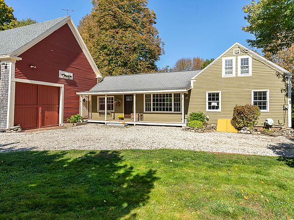A rare opportunity to own a vintage Maine farmhouse, brimming with history and charm! Known as Cobbler's Cottage, this historic home was once the residence of a Civil War veteran and cobbler, offering a rich tapestry of local history.In 2018, the property underwent extensive renovations. Local artisans utilized Maine's natural resources, incorporating cedar shingles, pine boards, and stone to preserve the home's authentic feel. Upgrades include modernized heating, plumbing, and electrical systems, as well as new exterior doors, decking, and flooring. The heart of the home lies in the kitchen, featuring a shiplap accent wall, quartz countertops, a farmhouse sink, and premium Bertazzoni appliances. This space flows seamlessly into the dining area and living room, where a new Hearthstone Manchester cast iron woodstove, set against a brick surround, serves as a focal point. Adjacent to the main living area is a versatile room that can serve as a den or a bedroom, complete with bespoke hardwood built-ins and French doors leading to the deck. A half-bath enhances the functionality of this space. The main floor bath has been fully renovated featuring a custom tile shower for a spa-like experience. Upstairs, two additional bedrooms provide cozy retreats, each filled with natural light. The property boasts a beautifully renovated three-level barn, offering plenty of room for hobbyists, extra storage, or even a workspace. The three-bay garage adds versatility, complete with overhead storage. The outdoor space is equally impressive, w/ extensive perennial plantings, newly built stone walls, & a white cedar fence. You will also find peach, pear, apple, and sweet cherry trees, along with maple syrup-producing trees and a small shed currently used as a sap house, perfect for those interested in hobby syrup-making. This remarkable property is an ideal haven for those who appreciate history, craftsmanship, and ample space for their passions—all just 3 miles from downtown Freeport
