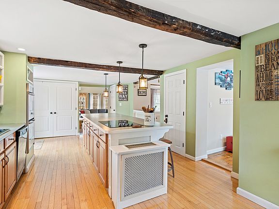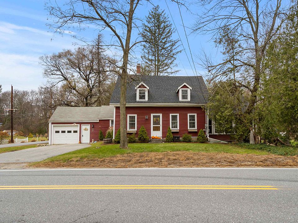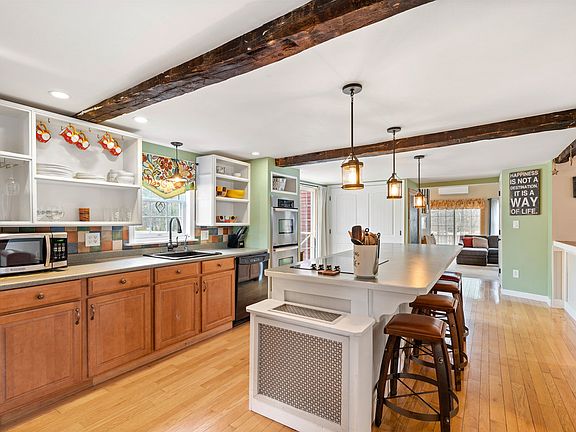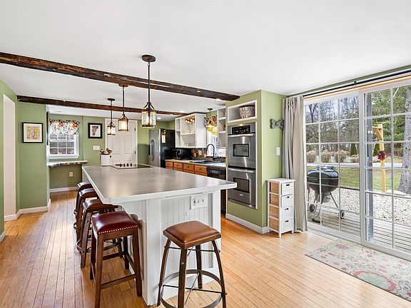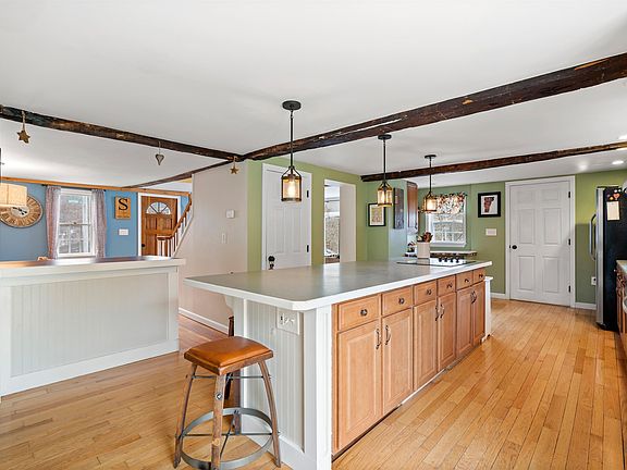 Full of charm and character - this 3 bedroom antique sits on 1.27 acres in a sought after location, ideal for commuters and a stones throw to the Mass border. From the attached garage, enter the house through the convenient mudroom. Enter the welcoming kitchen which boasts a 10' center island with a solid cook-top stove, double ovens, dishwasher, fridge, walk-in pantry and laundry closet. From the kitchen, head out the slider to the deck and newly built patio area and the expansive backyard. Access both the living and dining rooms from the kitchen - all boasting exposed beamed ceilings and wood floors. A newer addition houses the spacious family room with walls of windows, soaring ceilings and a newer slider to the deck - plus a pellet stove to take off the winter chills and a mini-split for the warmer summer days! The brand new 3/4 bath is simply stunning with an enormous tiled walk-in shower and rain shower head, vanity with bronze sink and skylight, a true oasis! Head to the 2nd floor where you will find 3 bedrooms (2 of which with built-ins and hardwood floors) and a full bath with jacuzzi tub and separate shower. New roof 2021 (except garage), radon air and water mitigation systems, newer oil tank, 200 amp service. This home has been truly loved by the current owners and you can feel the good karma the minute you walk thru the door - full of warmth and original details - yet updated to today's standards. Showings begin Saturday 12/2.