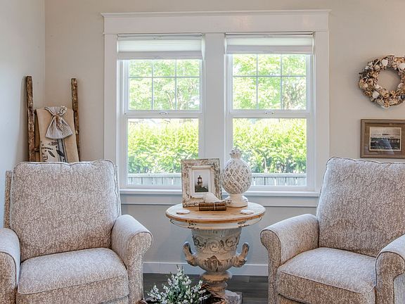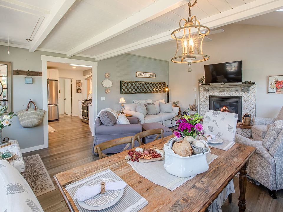 Feel at home in this serene English-country style cottage, perfect for a couple, small family, or a gals' weekend getaway. The beautifully decorated seaside home features a main living room with abundant seating, including a couch and multiple recliners, complemented by wood floors, vaulted white plank ceilings with skylights, and dreamy coastal decor elements. The cottage has two bedrooms, each with a queen bed, and one spacious full bathroom offering a shower tub combo. The main living room offers a cozy, welcoming space complete with a gas fireplace and large flatscreen wall-mount TV. Just off the living room is a hardwood dining table, comfortably seating four. The gourmet chef's kitchen is fully outfitted with an over-sized farmhouse sink, granite countertops, a six-burner gas range with a hood and double oven, a French-door fridge with drawer freezer, dishwasher, microwave, toaster, and Keurig coffee machine. There is also a laundry room off the kitchen with a washer and dryer. Upon arrival, guests will be greeted by lovingly maintained flower gardens around the deck and side of the house. Step outside to enjoy the botanical oasis with a sunny front deck flanked by ferns and flowers, offering a charming seating area to sip a glass of wine and watch the sunset over the ocean. Guests can also dine alfresco at the patio table for four or follow the stone path through the raised flower beds to the private fenced back deck with relaxing chaise lounges. A keyed lock box is available for guests' valuables. The property is non-smoking and no parties are allowed.