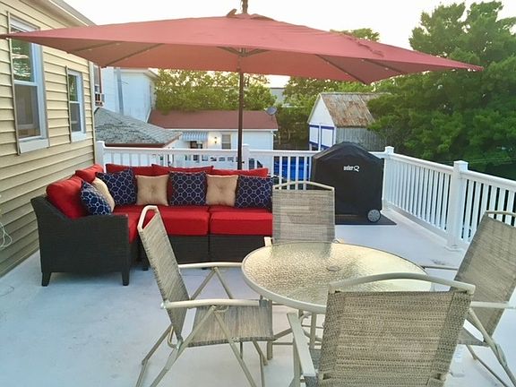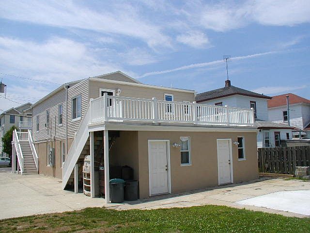 "Lovely two bedroom, one bath second floor condominium unit with an oversized private fiberglass deck overlooking the huge grass-covered back yard area. A short walk to the beach, boardwalk, public parks and only three blocks from the Convention Center. Return from the beach and relax on your private deck and grill up lunch or dinner. Off-street parking, separate storage area, and outside shower make this perfectly kept unit a great seashore escape. This home is available for use year-round. The property is being sold furnished less personal items and exclusion list items. Easy to show. Lockbox.