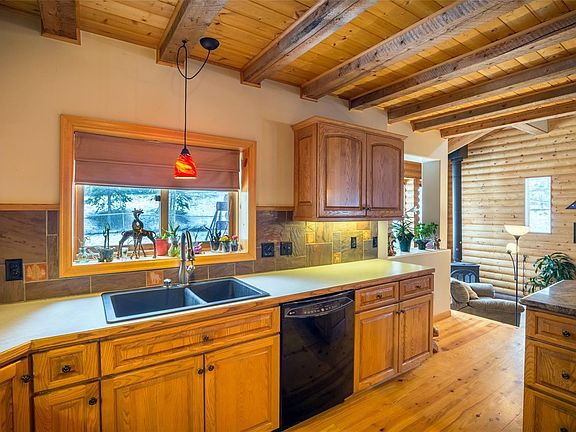 Nestled in the center of Downtown Oak Creek, this home boasts beautiful log construction, tall vaulted ceilings and over 3,000 sf of living space across 5 city lots. From the beautiful outdoor space to the raised deck space to the indoor living space, guests will be entertained wherever they wander. The tall, south facing windows and gas fireplace warm the home in the winters and the radiant in-floor heating consistently maintains the entire home's temp. The breakfast bar and island in the kitchen will allow all to gather while food is being prepped. The large master retreat features an ensuite with double vanity, walk-in closet and attached private deck. This home perfectly blends rustic log architecture with modern conveniences and finishes. The basement workshop, outdoor shed, and large yard provide ample storage for tools and gear. Amazing proximity to Stagecoach reservoir and the Flat Tops Wilderness area's world class fishing and hiking!