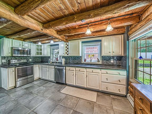 This great log home features a welcoming covered porch and an oversized deck, perfect for outdoor enjoyment. Inside, the cozy living room with a fireplace complements the home's rustic charm, while four bedrooms and a finished lower-level walkout offer plenty of space for family and guests. The property includes a spacious apartment above the heated two-car garage, providing extra living or rental potential. The lovely backyard is perfect for relaxation or play. Ideally located, this home is just seven minutes from Lake Sunapee and Mount Sunapee, with Sunapee Harbor right around the corner, offering easy access to year-round recreational activities. *Delayed showings until the open house Sunday, June 16th 10am-12pm*