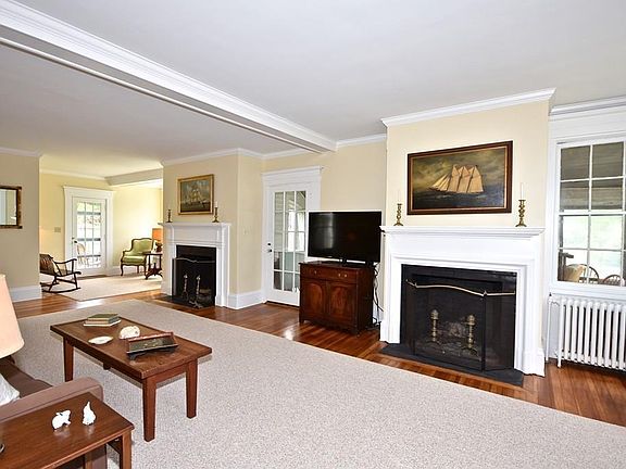 Historic 1860 home is located on a corner lot on one of Padanarams most idyllic streets, two blocks from the New Bedford Yacht Club and at the entrance to Ricketson's Point. Double living room with two fireplaces, sun room and access to patio, dining room w/fireplace, eat-in kitchen w/butlers's pantry and cold pantry, entryway w/curved banister, music room, office, laundry room and two half baths complete the first floor. Master bedroom suite w/fireplace and sun room, five additional bedrooms and two full baths complete the second floor. Original architectural detailing throughout includes built-ins, wainscoting, crown moldings, two staircases and wood flooring. Attached two car garage with work area, storage and stairway leading to room above. A private patio is the perfect place to enjoy evening cocktails and dining alfresco. Undeveloped right-of-way across marsh to shared strip of shoreline in Padanaram Harbor. Walk to yacht club, restaurants, shops and water front.