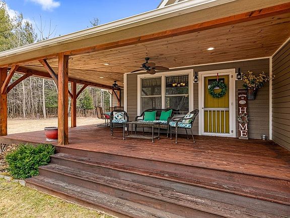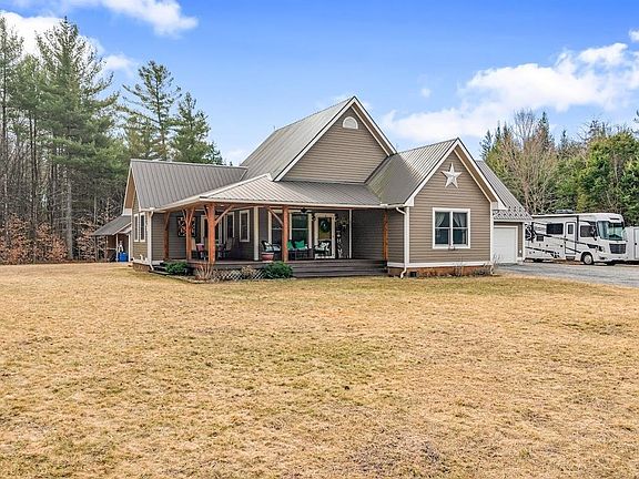 Welcome to this exceptional home, a true testament to quality craftmanship and thoughtful design. Situated on 4.59 acres of beautiful wooded land with ample open space, this property offers the perfect blend of rustic charm and modern sustainability. Inside you will be captivated by the gorgeous interior featuring handmade Maple custom cabinetry and locally sourced beams that bring warmth and character to every corner. The open concept layout is ideal for both relaxing and entertaining, with abundant natural light accentuating the exquisite woodwork. This energy efficient two bedroom two bath home includes a geothermal system and solar panels, ensuring low utility costs while reducing your carbon footprint. Other modern comforts include, on demand hot water, central air, an air exchanger, as well as a generator for peace of mind. The inviting front porch showcases custom woodwork and ceiling fans, providing a perfect spot to enjoy your tranquil surroundings. The lawn & flower garden sprinklers make maintaining your landscape a breeze. For hobbyists and craftsmen, the property features a climate controlled detached shop, currently used as a wood shop, complete with craft room upstairs, a versatile space for creative pursuits. The attached two-car garage provides direct access to the partially finished basement, offering additional space for storage, a workshop or even a home gym. This unique property offers a harmonious blend of luxury, comfort, and sustainability.