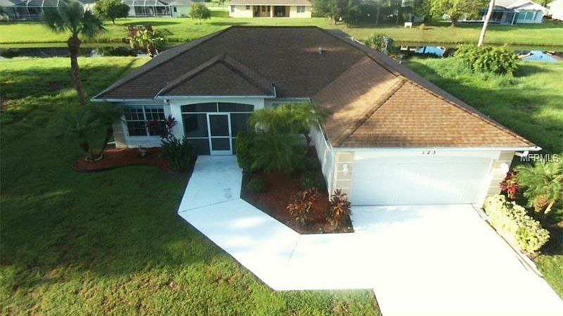 A custom kitchen and a pool with southwest rear exposure are just two of the features that make this home a fantastic value in the Golfing Community of Rotonda. Other unique features include an energy saving tankless hot water heater and generator hook up that is pre wired plus the roof was replaced in 2006. They also upgraded the garage door and installed storm shutters for the home. The AC was replaced in 2008. This home has been well maintained. As you enter the home you look out to the pool and canal view. There is a 3 panel slider to the lanai and pool area that gives you a great view. The kitchen has been upgraded with high end cabinets, stainless steel appliances & beautiful granite counter tops. The split floor plan includes a master suite that has a walk in closet and sliders to the pool area. The secondary bedrooms share a common bath & have a private hallway with a pocket door to the living area. This efficient floor plan is ideal for someone wanting the maximum living space and a home that is easy to care for. Located in the heart of Rotonda with its 5 golf courses offers an incredible life style with low $166 per year HOA fees. You are within 7 miles of the world class beaches of Boca Grande and Manasota Key with the Englewood Beach entertainment area. The area has some of the best boating & fishing in Florida. There are 5 major airports with 100 miles including PGD (19 mi) with 28 nonstop destinations for easy snowbird communing.