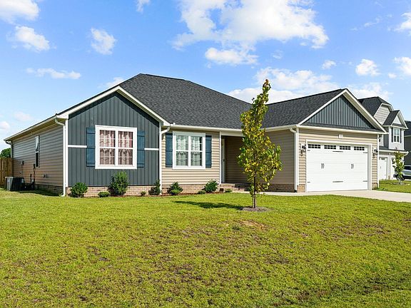 ** Back on the market due to buyer financing falling through** Welcome to this charming 4 bedroom, 2 bathroom ranch home nestled in the new Brickstone neighborhood of Benson, NC. This property boasts a spacious interior living room, a huge kitchen island with granite countertops and plenty of cabinet space! The primary bedroom features a tray ceiling, which adds an elegant architectural touch, creating a sense of depth and character to the space. Sunlight gently filters in through the windows, bathing the room in a warm, natural glow that invites relaxation. Adding to the convenience and luxury, a spacious walk-in closet stands ready to accommodate your wardrobe and accessories, keeping everything organized and easily accessible! The bathroom features a double sink vanity, walk-in shower and a garden tub, perfect for unwinding at the end of the day. Enjoy the serenity of the huge fenced yard, perfect for outdoor activities and gardening. Don't miss the opportunity to make this wonderful house your home!