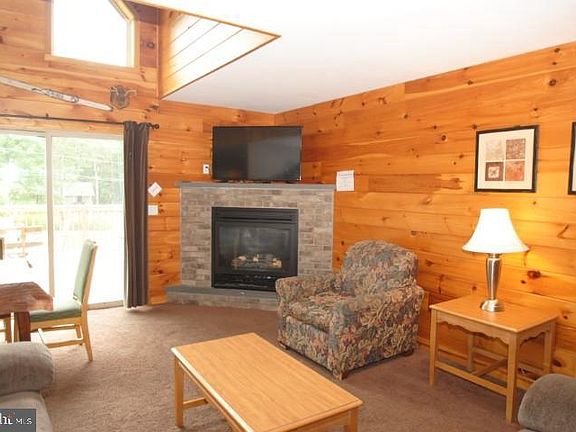 Log Chalet in the quiet community of Brier Crest Woods! This chalet has 5 bedrooms, 4 full baths, and two extra rooms that could be bedrooms. Living room has a brick propane fireplace, cathedral ceilings and sliders to the deck. Eating bar in kitchen for cozy family meals. Master bedroom with full bath on main level with 2 other full bedrooms. Lower level has 3 bedrooms, a full bathroom, and a family room with doors to outside. Upper level has a loft, bedroom and full bath! Outside has a wraparound deck. Other features of the home include log siding, 6 panel doors, and wood walls. Walking distance to community lake and playground!