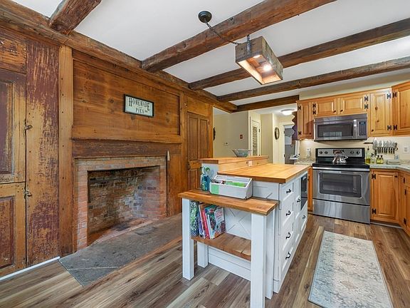 Experience the timeless charm of the past in this meticulously modernized antique home. This home exudes character while incorporating energy-efficient features. The six authentic fireplaces, adorned with original woodwork, showcase the rich history. Each room boasts spacious closets, while the first floor is adorned with wide wooden floors. The bathrooms on the second floor feature radiant electric heating, custom tile showers, a claw foot soaking tub, and even a convenientpocket door. The level lot provides ample sunshine and natural shade from beautiful trees, creating a delightful space for recreation or gardening. You'll also find apple trees and various other plantings, along with the captivating sight of the previous barn's granite foundation. Additionally, the outbuilding with electricity provides openvehicle storage. Showings start on 7/8/23 11:00-1:00pm.