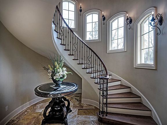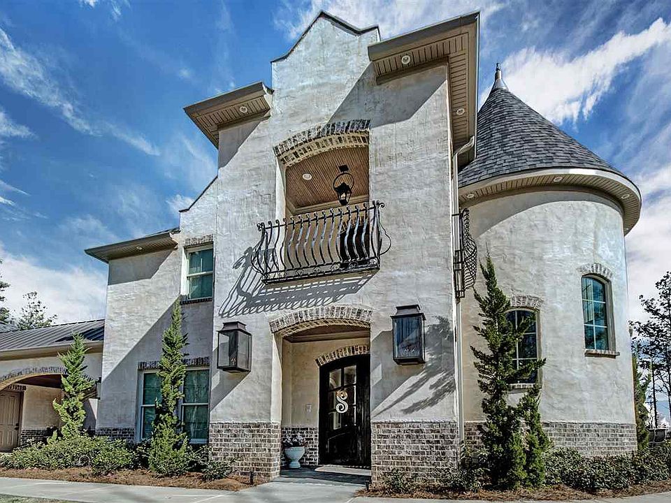 This luxurious 7500 sq foot estate is a masterpiece of design and craftsmanship. Inspired by the west façade of the world renowned Biltmore Estate in North Carolina. Primary features include, 6 bedrooms, 5 full baths and 3 half baths, children's den with wet bar and mini fridge, 2 balconies, several porches, Theatre room that is equipped with custom movie chairs, a wet bar and mini fridge, surround-sound and is soundproofed, A Large gym with state of the art equipment, Huge playroom/arcade, Large laundry room that is also a Safe room, the safe room is equipped with a camera system, 2 office areas, beautiful travertine floors, a one-of-a-kind floating spiral staircase. Beautiful hand painted Turret Ceiling, Antique ceiling tins, copper finials, copper lights, slate finishes on every porch. The gourmet kitchen has a built-in Sub Zero refrigerator & freezer, 6-burner cook-top range with pot filler faucet, copper farmhouse sink, large slab granite island (with a second copper sink.) The Master bedroom is spacious and the master closet is amazing, the master closet has custom cabinetry. The master bath offers a large walk-in shower and claw foot tub as well as custom cabinetry. There is a drive through portico, and a 5 car garage, plus parking pads. Architecturally situated on a quiet cul-de-sac in the Gates of Lineage Lake. A beautiful view of the property/Lake from most every window in the home.