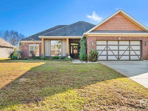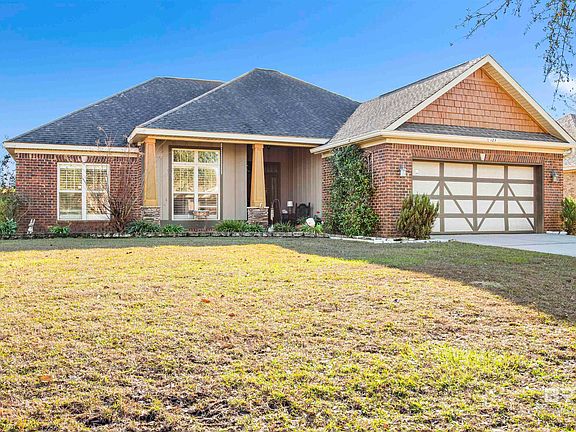 This home features a split floor plan, granite counter tops, some wood flooring and a wood tray ceiling in the primary suite. The primary bath features a jetted tub with a separate shower. Spacious covered outside area, great for extra entertaining. There is a shed which will convey with a window unit that cam be used as an office or extra storage. Fantastic location, short drive to Downtown Fairhope and less than 45 minutes from the Gulf Shores beaches. Buyer to verify all information during due diligence.