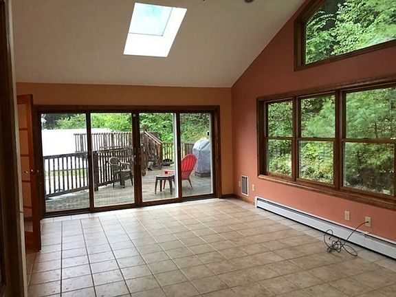 Great home in a great neighborhood. Home offer 3 bedrooms, 2 full baths. Updates done over the last 10 year include roof, windows, siding, brand new boiler, central air., pellet stove in dinning room. The great room addition has cathedral ceilings, recessed lights and skylights. French doors leading into the kitchen.Good sized kitchen and dining area. All three bedrooms are a good size. Basement is finished offering a kitchen , home office and large family room Wood stove in basement... There is a full bath in the finished basement offering a jacuzzi tub.The home is located on a dead end street. From the great room you walk out onto the deck and access to the pool. There are 2 large sheds on the property for additional storage. Title 5 completed