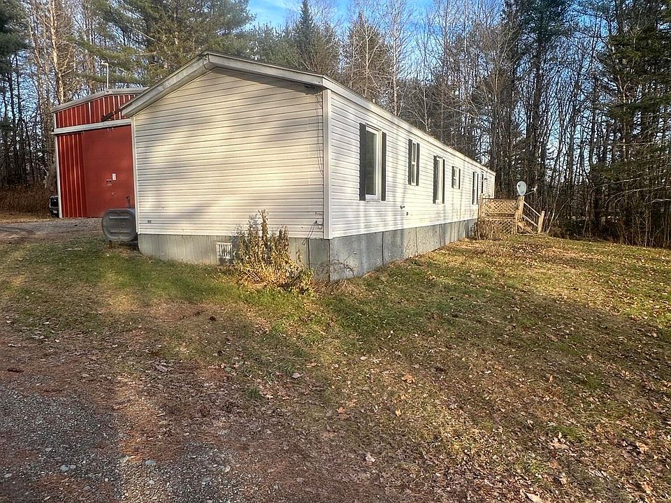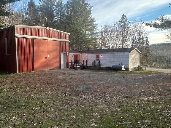 Beautiful setting on a private wooded lot with impressive views. The garage is massive and set up for auto repair, storge or another business. You could live in the existing mobile home, remove the mobile home and bring in a newer one or build.