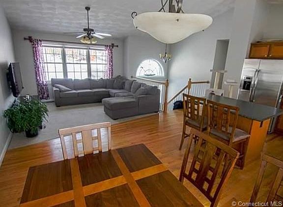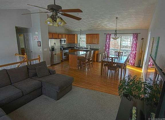 Like new raised ranch, with an open floor plan. Located in a Great Brook subdivision close to everything, minutes from Mystic and 95. Beautiful cathedral ceilings welcomes you to the open Kitchen, Dining, and Living room. A wonderful light filled space. The Kitchen has stainless appliances and plenty of cupboard space. The center island adds to the counter space and dining area. There are sliders opening to a spacious deck for summer fun. The master bedroom has a walk in closet and a double sink in the en suite bath. Two other good sized bedrooms complete the main level. The lower level has a large family room with multiple uses, a full bath, and laundry area. The two car garage is on the same level as the family room for easy entry into the house in inclement weather. The lot is large with plenty of privacy. The back of the yard is wooded and there is room for a garden. A shed on the lot makes it easy to store outdoor gear. The neighborhood has wide sidewalks, street lights, underground utilities, a walking trail and a playground. Don't miss this wonderful home. This sale in contingent upon the seller being able to close on suitable housing, seller has contract in place and closing to be no sooner then 11/1/2020 Ensure clients where masks and gloves per Owner.
