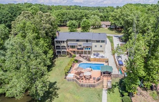 Luxury Living at its finest! Incredible entertaining home with no detail left out! Property is situated on just over 3/4 of an acre and well-manicured, complete with a sprinkler system and an excellent view of Lake Trollingwood... a 50-acre private lake! You literally have a view of the lake from every window on the back of the home. The entrance is just beautiful! New flagstone walkway and a huge covered front porch. The home boasts 6 bedrooms, 4 and 1/2 bathrooms, and is best described as a luxurious lodge! So warm and inviting, you'll feel comfortable and relaxed. When you enter home, you are greeted with a grand dual-staircase foyer! The hardwood steps and gorgeous chandelier bring it all together. The steps to the left take you to 2 bedrooms and a Media Room which could easily be a bedroom. Everything is spacious and there are 2 full bathrooms on this wing featuring Berber Carpet and lots of closet space... also has an awesome view of the lake and pool. The other set of steps in the foyer take you to the Owner's Suite.. Very expansive with gorgeous hardwood floors with a gas fireplace. The windows give you a panoramic view of the lake and property! The Owner's Closet is large with custom cabinets and cherry wood shelving. The Owner's Bath features a granite double vanity, with a steam stand-alone shower and a beautiful corner jacuzzi tub overlooking the lake. What a way to unwind!! Adjacent is a bedroom, perfect for a nursery, home office or craft room. The Laundry Room is also outside the Owner's Suite, very convenient and has plenty of cabinet space, wash tub, front-loading washer and dryer do convey. Owner just added a door to have easy access to the landing above the foyer. From the main floor entry, to the left is an amazing Keeping Room with a gas log stacked-stone fireplace, gorgeous hardwood floors and a very nice Wet Bar to serve your guests drinks .... Also in this area is a spacious Powder Room. The Dining Room attaches and is set up with a perfectly awesome view of the lake and pool. With the bar at the Kitchen, additional seating is no problem! The Kitchen is fabulous indeed, featuring Granite Countertops and tiled back splash, upgraded stainless appliances by Viking and BOSCH, they all convey. The stove is gas with JennAir updraft, built-in convection microwave, built-in wall oven with warming drawer, Kitchenaid under-counter Ice Machine, 1 Year old Ecowater filtration system, instant hot water tap, custom solid cherry cabinetry with self-closing, full extension and dovetail drawers. There is also a Butlers Bar and wine rack. The kitchen is open, the two bars on either end of the kitchen really expand the room. Great Breakfast Room with a large picture window for another view of that lake and pool. The Family Room is very spacious. It has a stacked-stone fireplace, that could be wood-burning but is currently equipped with remote-controlled gas logs. The floors are a beautiful solid oak . The room also features custom bookcases with granite tops. Just off the Family Room is a beautiful screened porch! So relaxing with a great view of the lake, this would be a favorite spot I would never leave! Downstairs is where all the fun is, a fully-finished basement and lots and lots of SPACE! Features here are a Kitchenette, granite countertops, dishwasher, sink ,under-counter refrigerator and lots of cabinets! Bar is along the wall a great set-up while playing pool. A new office was added with a built-in desk and decorative wall shelving a view of the Game Room, pool and lake. The Game Room features a custom wood wall and ceiling... a great place for all your toys! There is a full bath and another bedroom with French doors right out to the pool area and lake.. Plenty of extra storage. The downstairs garage also has a washer and dryer convenient for pool use. Please feel free to reach out if I am availa