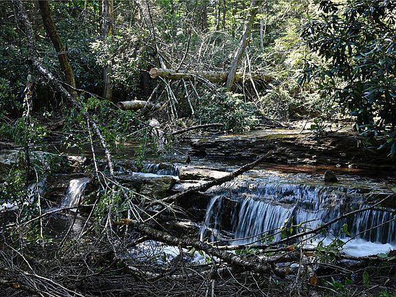 - Features: Stream/Creek, Sloped, Views, Wooded