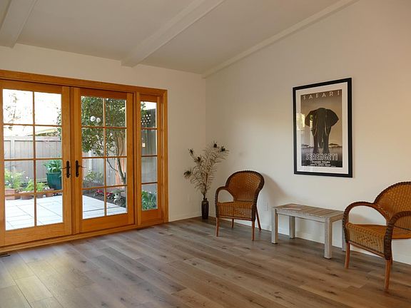 Fabulous new price! This 2/2 offers a lovely SE view through a mature oak standing majestically in the open space. Living room and bedroom french doors open to a plethora of flowers and fruit trees bordering the well-tended patio garden. Beautiful new flooring and close proximity to parking and main buildings make this unit a special prize.
