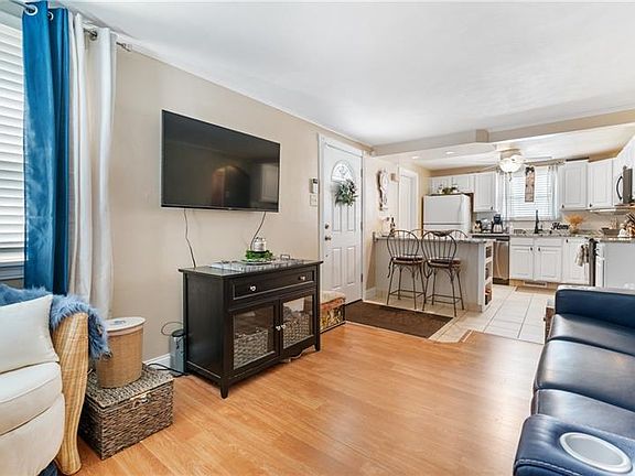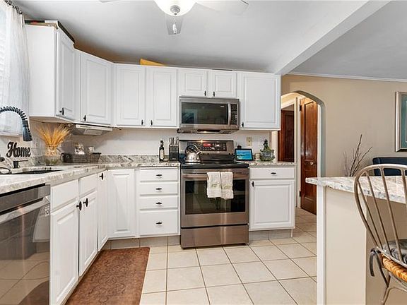 Step into this charming ranch home. New Roof in 2012, Covered front freshly painted porch has vinyl railing. Recently remodeled kitchen with new granite, graphite single bowl sink and new faucet, newer LG black stainless steel appliances including dishwasher, gas stove and microwave oven. Tile backsplash, white cabinets and recessed lighting. Breakfast island seats 4. Kitchen opens to living room for nice large living space. New steel front door. Master Bedroom and guest bedroom have original hardwood floors. Ceiling fan and 2 windows in master. Guest full bathroom has tiled-in shower, tile floors and updated white bead board vanity. Basement offers ample storage, built in counter/cabinets and large laundry area with utility sink. Newer hot water tank 2019. Enjoy quaint backyard space with vinyl fence backdrop. Paver stones and pea gravel provide the perfect entertainment spot. Front of home has newer retaining wall, vinyl railing on sidewalk/steps and updated landscaping.