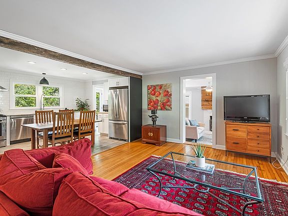 Renovated mid-century ranch on half an acre in the heart of Carborro retains all of the charm of a bygone era and adds all of the functionality of newer home! Modern updates compliment the clean aesthetic of the entire home and more rustic features such as the wood ceiling beam delineating the well-appointed kitchen. The open, flexible floorplan offers multiple living spaces to fit your lifestyle. Each bedroom has a gorgeous dedicated full bath. Outside, a huge deck and patio lead to an oversized driveway and detached 2-car garage with plenty of space to use as a workshop. The large flat backyard also has a storage shed for all of your necessities. Miles of trails with access right down the road to embark on an outdoor adventure or wander into town. Just minutes from Weaver St, the Famer’s Market, and the hippest cafes, shops and galleries. Don't miss this opportunity to embrace the Carrboro lifestyle at its finest!