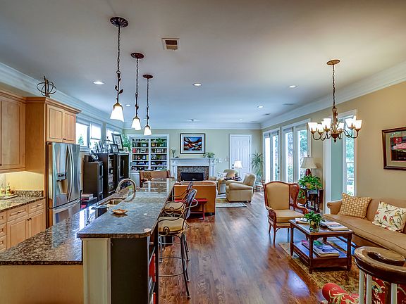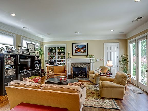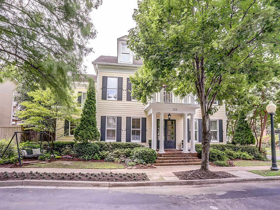 The elegant Harbor Town home you have been waiting for. Located on a corner lot. The home boasts 9' ft. ceilings, 10" crown molding, nailed down hardwood floors, granite counters and tumbled marble back splash. Wonderful added built ins throughout, sound system, 4" plantation shutters, professionally landscaped with fountain. Brick and iron fencing. Original plans had bedroom down. Sellers made it into a library. The two sculpture pieces in the yard do not stay. (The one on the fountain and the one in the flowers.)
