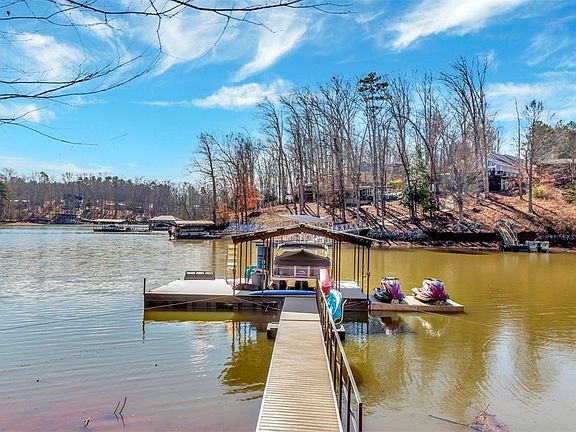 Waterfront Lake Hartwell home with covered slip dock in place! Home features split floor plan with 3 bedrooms and 2 full bathrooms on the main level. The walkout basement features 2 additional bedrooms and a full bath along with recreation area and unfinished storage/workshop. Lakeside deck and patio overlook concrete golf cart path and lake views.