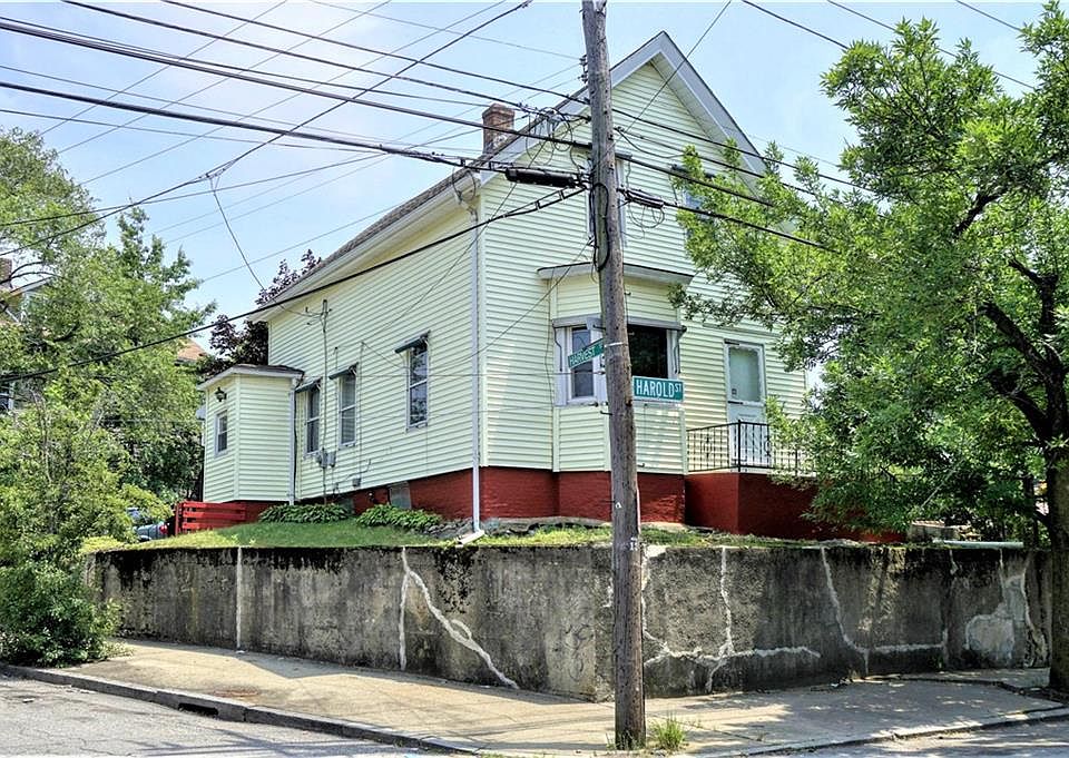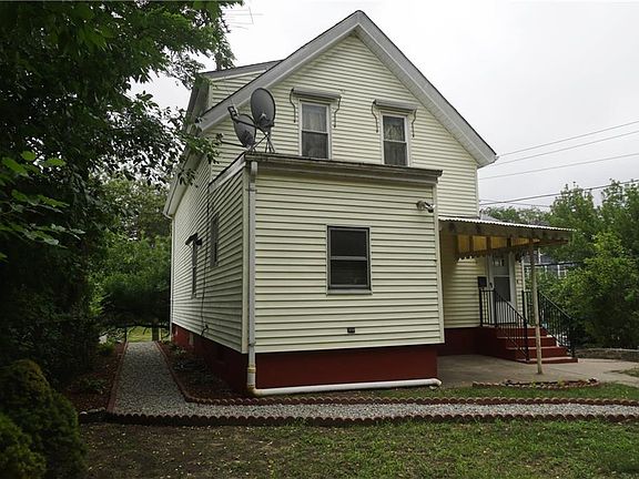 Situated on an elevated corner lot, this charming Colonial home features generously sized rooms and an L-shaped yard. The large living room opens to a beautiful staircase leading to the 2nd level. Lots of possibilities on the first level: The Kitchen area can be converted into a 3rd bedroom with a full bath giving the option for a lower and upper master bedroom. On the 2nd level are two bedrooms: one bedroom has a full bath and the other with a cedar closet and walk-in closet. Full unfinished basement with a half-bath and walkout. Brand new front door, newer windows with aluminum awnings, and freshly painted foundation. A newer heating system: The hot water tank is about 7 yrs old, the furnace is 5 years old.