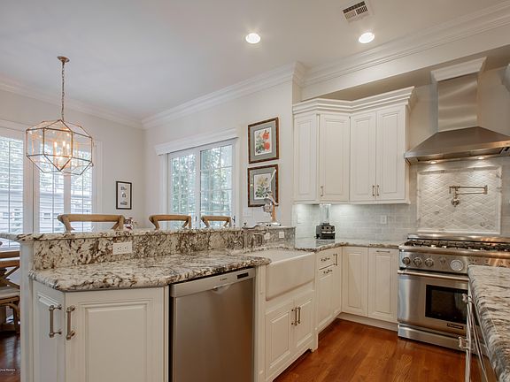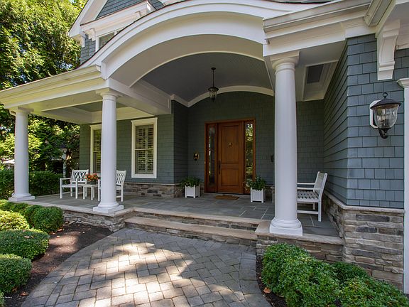 Beautiful 3131 sq ft Colonial built by Atlantic builders with great curb appeal, enhanced by a bluestone porch & cedar shake siding. The 1st floor has dramatic 10 foot ceilings, a chef's kitchen featuring a Thermador range, Subzero, warming drawer, pot filler, breakfast bar & large pantry. There are both formal & informal dining rooms, an office, a 2 story foyer, a study center w/ 2 desks, a laundry room & Great room with built-ins, coffered ceiling & a gas fireplace. There are 4 bedrooms on the 2nd fl. The primary bedroom has cathedral ceilings, 2 walk-in closets & an impressive bath with double sinks, tub, shower & water closet. The finished basement has a bedroom, full bath, family room & a gym. A generator, outdoor shower, attached 2 car garage & gas fire pit complete the picture!
