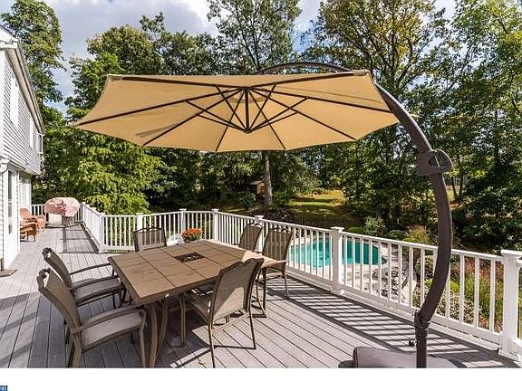 Charming & stately center hall colonial home at the end of the peaceful Heather Lane cul-de-sac in the Blue Ribbon Garnet Valley School District nestled on a private & serene 1.5 acre tree lined lot backing up to beautiful rolling hills and horse pasture. This bright and beautiful home is gorgeous inside and out from its gleaming hardwoods that warmly greet you at the grand foyer entrance and meander through a formal living room, grand formal dining room with its bay window, and leading to a gourmet kitchen with its diagonally laid tile floors, granite counters, stainless appliances, tile backsplash and center island as well as a sunny breakfast room with views out through a bay window over the oversized low maintenance trex deck, pool and patio as well as breathtaking views of rolling hills and horse pasture. On the main floor you'll also find a spacious office/study located at a quiet end of this lovely home, a family room with a cozy stone wood burning fireplace and triple french doors leading out to the oversized deck and its lovely views, as well as a main floor laundry/mudroom leading out to the oversized two car garage. Upstairs is a Master suite including a spacious walk in closet and an en suite master bath that features a Wirlpool tub, stall shower and his & her vanities, three additional generously sized bedrooms and a hall bath. There is also an immense walk in storage area above the garage that could also be partially finished for more flex space / potential additional bedroom if desired. The lower level is finished and includes a large great room with direct access to the pool area as well as an additional full bathroom and a fifth bedroom with direct access out to the pool deck and backyard. This gorgeous home is conveniently located with easy access to all major routes to Philadelphia, Wilmington, NYC, shopping and all major corporate centers.