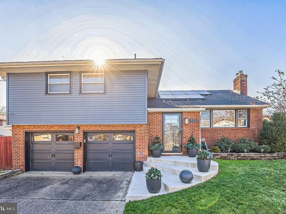You're gonna fall in love with this stylish and charming home, tastefully updated and upgraded with 3 bedrooms and 2 full bathrooms.Outside, the red brick is accented with black window and door trim, giving a contemporary feel to this mid century home. Situated on a corner lot with huge fenced in rear yard, there are two patios, the one off the three season room perfect to relax by the fire pit.The lower level family room is warm and cozy with access to the two car garage, unfinished basement and the fabulous three season room. With dual access to the spacious rear yard, this room will be the focal point for entertaining guests. Enter the property up via the brand new curved stairs leading to the front door. The foyer leads to a vibrant living room with vaulted ceilings and hardwood flooring. The kitchen features stainless steel appliances, white cabinetry, black granite countertops, and recessed lighting. The upper level includes three bedrooms, with the principal bedroom featuring a full bath and spacious closet. Ample storage options are available in the unfinished basement, two-car garage, and rear-yard shed. The laundry area is located in the basement, complete with high-end front-loading washer and dryer. Notably, the home is energy-efficient, featuring a new hybrid HVAC system (2022), windows, exterior doors, new roof, siding, gutters, fascia, soffits, chimney crown, and flashing (2022). Don't miss this move in ready impeccable home!