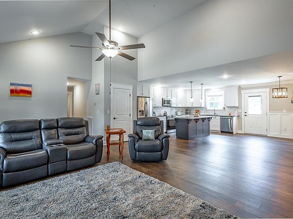 The spacious and open one-level floor plan boasts high ceilings, creating a bright and airy ambiance throughout. The 2,152 square feet of living space provide ample room for all your needs. The home features 3 bedrooms and 2 baths, ensuring plenty of space for the whole family or guests. First-rate touches in this home include ceramic tile showers and LVT flooring throughout, providing both style and practicality. The heart of the home is the expansive kitchen, complete with a sizable island offering bar seating, ideal for casual dining. Enjoy the beautiful white cabinets, granite countertops, subway tile backsplash, large pantry, and top-of-the-line stainless steel kitchen appliances, making meal preparation an absolute delight. The master suite offers a serene retreat with a walk-in closet and an ensuite bath, exuding comfort and privacy. The additional bedrooms are also well sized and come with ample closet storage space.