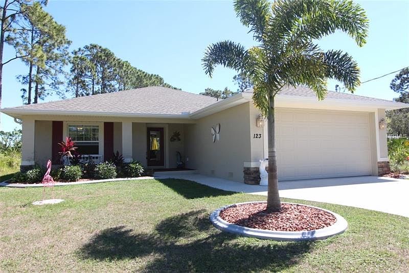 Immaculately kept home, must see to appreciate. Best price in the entire Rotonda area for a 4 bedroom home. Built in 2015/16 and offers 4 bedrooms, 2 baths, 2 car garage and a huge beautiful extended paved patio. Charming home with without neighbors on either side or behind you and located on a very quiet street in Rotonda Lakes. Upgrades galore!! Includes, Granite Counters, All Stainless Steel Appliances, tile through-out, In-door laundry with a washer/dryer. Open floor plan, cathedral ceilings and a great room design that is perfect for entertaining. A secluded backyard gives plenty of privacy & lots of room to add a pool if so desired. For the avid golfer there are at least 5 golf courses within minutes. Some of the best Gulf of Mexico beaches and boating & fishing in the entire State are also located just minutes away as well. If needed, all Furniture items can be sold with separate side deal.