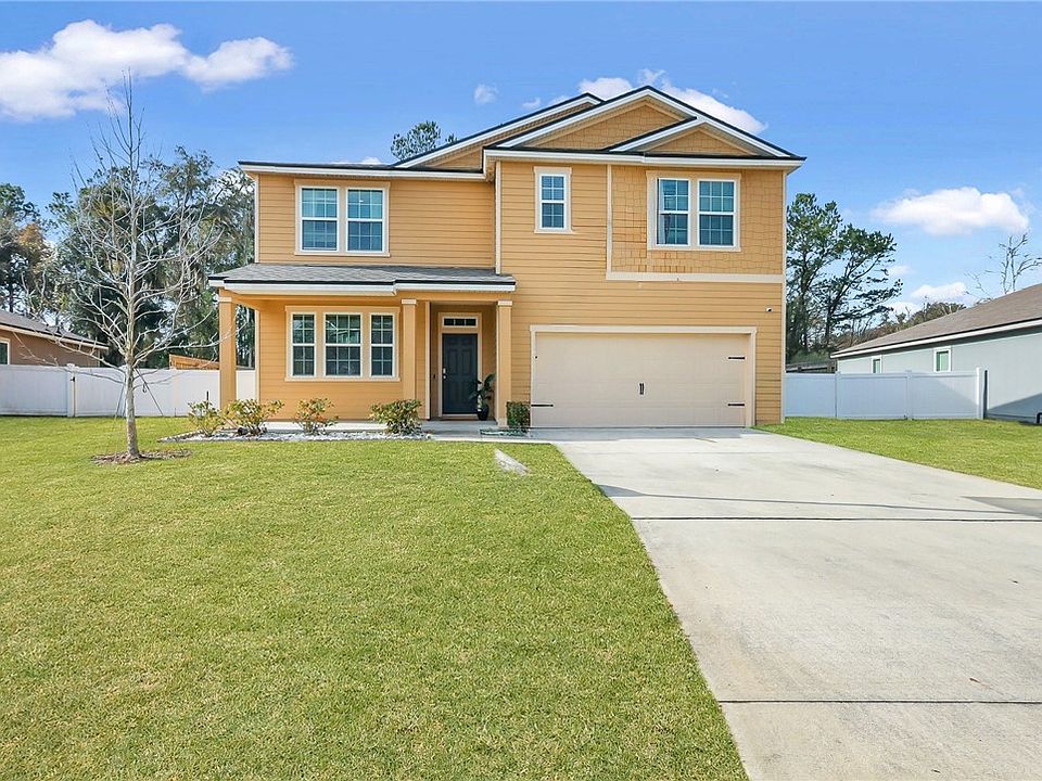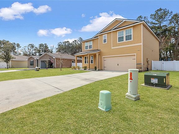 What is so special about this property? The unique combination of an affordable 5 Bedroom/3 Bath Home that is also perfectly situated for added privacy with a fenced yard that backs to woods. With nearly 2600 ft.² of living space you will surely enjoy this beautiful open concept floor plan. Enter into the inviting Foyer; immediately to your left there is an Office/Flex Space. Continue into the fully equipped kitchen with breakfast bar that overlooks the Living Room and Dining Room. Also on the 1st floor is a large Bedroom and Full Bath. The 2nd floor has an awesome Loft/Den surrounded by 4 spacious Bedrooms, additional Bathrooms, and Laundry Room. The Owner’s Bedroom features an ensuite Bath and generous Walk-in Closet. The outdoor space offers nice curb appeal and plenty of room for entertainment. There is ample parking space with a 2 Car Garage and Parking Pad. Located in the lovely community of Waters Edge; convenient to I-95, Kings Bay Navel Base, restaurants, grocery stores, retail shopping, and all that Camden County has to offer.