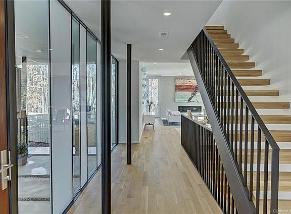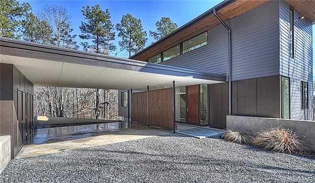 Designed by award winning architects, this stunning home is a work of art that is truly unique on the lake! WATERFRONT w/priv pier w/over 10 acres of woods for privacy! This modern home has so much to offer! Living rm w/fireplace. 2 decks & patio. Chef's kitchen designed by a Chef features Wolfe 5 burner gas cooktop, worn leather granite cntr, Braun commercial hood w/removable/washable baffles, Bosch double oven w/side open (stand & convect), Bosch dishwasher, Kitchen Aide 5 door refrig, Kohler touchless faucet & cust solid wood cabinets w/soft close. Master has amazing views-facing East. Ensuite Master bath feels like a spa. Enter thru spa door to walk in shower, volcanic limestone free standing tub & dual sinks. 2 secondary bdrms each w/ensuite bath. Lower lvl has a den/library w/fireplace, 1/2 bath-plumbed for full bath behind wall, rec room/media rm & unfin stor. Carport designed to easily convert to garage. Path to private dock/cove. 1/2 mile of trails in woods for your enjoymnt