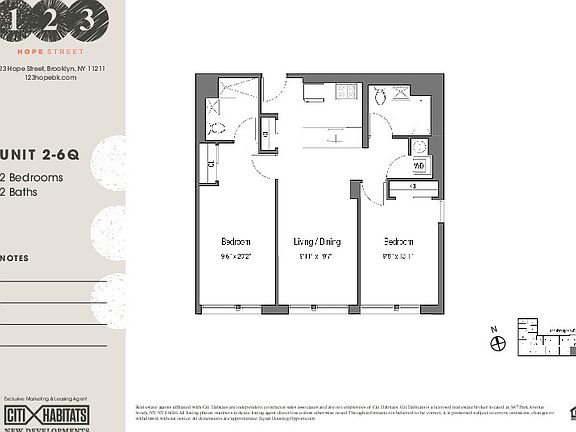 This is a 2 bedroom, 2.0 bathroom, apartment home. This home is located at 123 Hope St #5Q, Brooklyn, NY 11211.