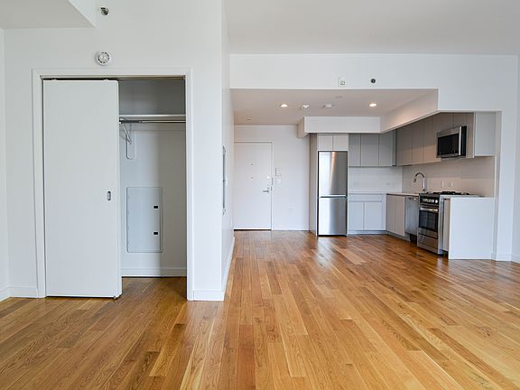 This extra spacious alcove studio home features a large living space, plus floor-to-ceiling windows allowing for open views and great sunlight. Welcome to 123 Hope Street, a stylish new rental development in the heart of Williamsburg, Brooklyn. Designed by Aufgang Architects with interiors curated by Craft Studio, inspired by the modern art galleries of the world, 123 Hope offers the ultimate home for the stylish urban sophisticate with an artistic edge. To complete the experience, scattered throughout the building is the mural work of Claudio Roncoli, a Grammy Award-winning artist. The artistic aesthetic of the building extends to a full suite of stunning amenities purposely curated with a New Yorker's bustling schedule in mind. Highlights include: A stunningly designed building entrance and lobby A sleek resident's media lounge and co-working library space A state-of-the-art fitness center An expansive, fully furnished and landscaped roof deck overlooking Brooklyn and Manhattan Other Property Features Include: Part-Time Doorman Building Expansive Windows and Stunning Natural Light Natural Hardwood Floors Designer Kitchens & Baths In-Unit Washer / Dryers Pets Allowed Select Residences With Outdoor Space 123 Hope is located just around the corner from the Lorimer Street L train and Metropolitan Avenue G train stations as well as only minutes from the J,M and Z subway lines at Hewes Street making Manhattan, the rest of Brooklyn, and Long Island City an easy trip away.