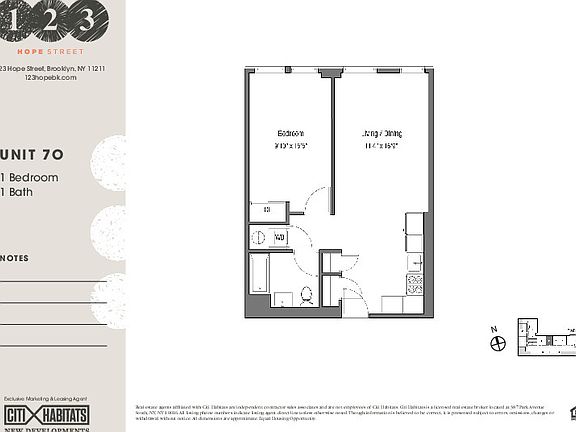 This 659 square foot apartment home has 1 bedrooms and 1.0 bathrooms. This home is located at 123 Hope St APT 7O, Brooklyn, NY 11211.