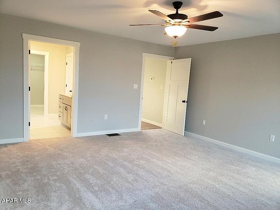 Beautiful new construction stick-built home by Dibert Electric & Custom Homes LLC. Open floor plan: Kitchen w/island, dining room + living room. Main level master bedroom ensuite, also laundry room + extra 1/2 bath + office on main level. 2nd level with 2 more bedrooms + bath. Full unfinished basement, spray foam insulated, high efficiency heat pump, zones heating, plumbed for another bath. Oversized 648 sq ft 2-car garage with overhead door + drywalled interior. Great view. Close access to I-99. J-615