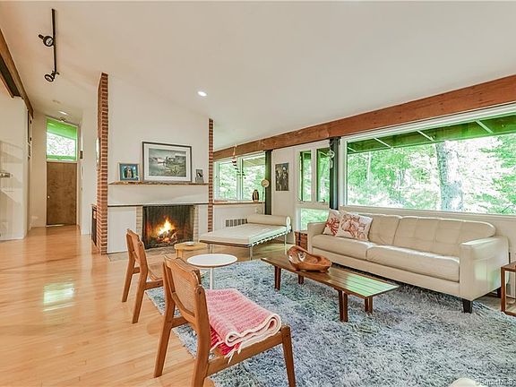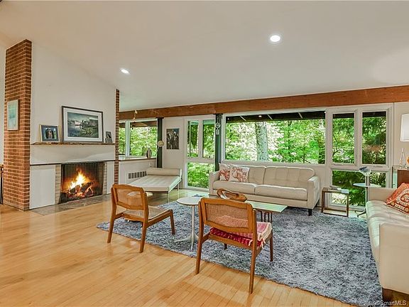 This Mid- Century Modern Home is set back with foliage all around. Open Floor Plan, Steel Beams, a Chef's Kitchen, Fireplace in the Living Room, Yoga / Exercise Room, Sauna, Two Family Rooms one with fireplace, the other family room with built-in's, Laundry Room and Mud Room. Hard wood floors , A/C, and gas. PETS ARE WELCOME !! Close to everything wonderful in Darien. The trees provide tranquility , as the seasons change the window's become art bringing the outside in. BONUS : A SEPERATE OUTSIDE ENTRANCE TO THE AU PAIR SUITE OR HOME OFFICE OR GUEST QUARTERS. Within Walking distance to Olson Woods and Piacentini Preserves . Minutes to the Merritt / 95 and train station. Come visit, feel the "sunshine" at 123 Hoyt Street. To rent furnished or unfurnished. Would be "open to discuss" Purchase of home. There is also additional land for purchase.