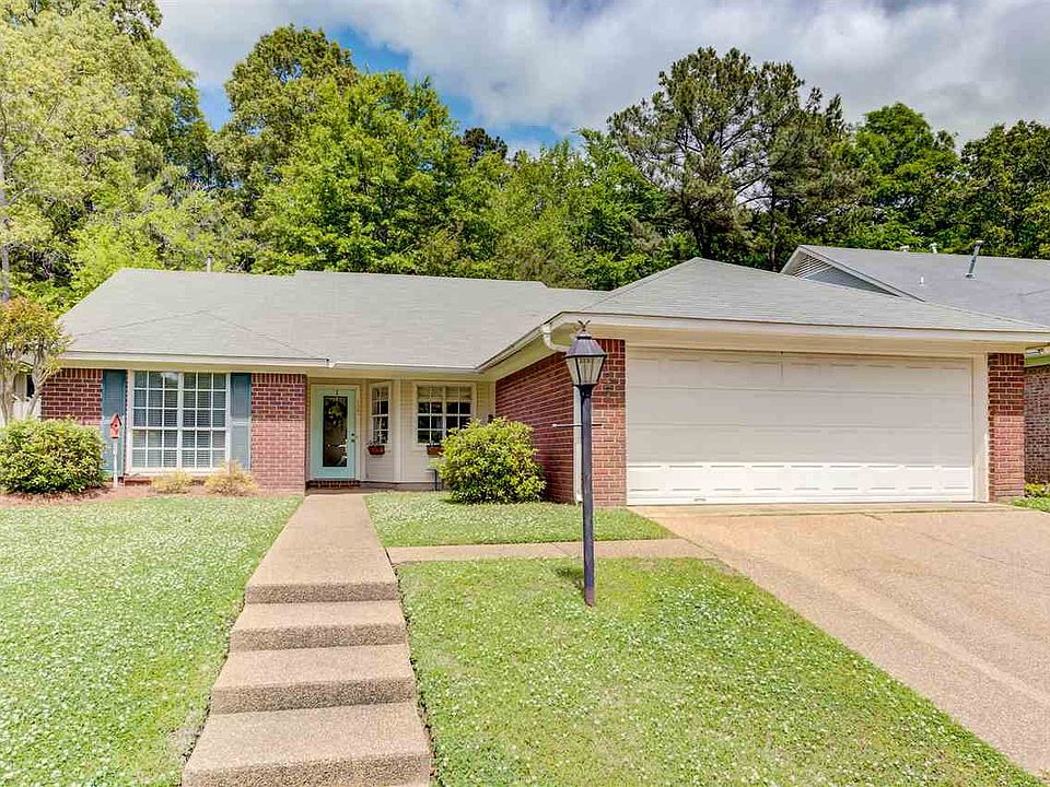 Charming 3/2 SPLIT plan home in Woodmoor Subdivision. It features an open kitchen and breakfast area including a stainless steel range and built in microwave. It has plenty of room for entertaining guests and cooking. This home has a spacious living room area with a beautiful white brick fireplace. The ceilings are vaulted in the living room. The formal dining room has a lovely grey paint color on the top half of the walls with white wainscoting on the lower half. The master bedroom is off the living room and opens to a master bath. The master bathroom features a double vanity, stand alone shower and a separate tub as well. The spacious closet allows plenty of storage. There are two bedrooms on the other side of the home making it a wonderful split plan. In between the bedrooms is a full bath with a washer and dryer closet. The home has a two car garage. The back patio area is darling with a deck area which can be used for entertaining. There is a shed included and an upper grassy area. This home backs up to the Natchez Trace and has a beautifully wooded view in the back!