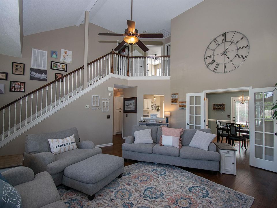 This beautiful MOVE IN READY 3BR 2 and a half Bath home is ready for it's new owners! It's been nicely updated and well taken care of. It boasts gorgeous engineered hardwood floors downstairs and the living room has tall ceilings w/tons of natural light and a cozy fireplace. The updated eat in kitchen has white cabinets, stainless steel appliances and tons of cabinets for storage. Just off of the kitchen is a lovely dining room w/french doors that open to the living room. The owner's suite is on the MAIN floor and it has a large walk-in closet, double sinks in the bath, separate stand up shower and a separate water closet! Upstairs you will find a large BONUS ROOM that could be used as an office or a bedroom. There is tons of attic storage space, a BRAND NEW ROOF installed 07012021 with architectural shingles, a 12x18 storage shed w/electricity and cable, fenced in backyard and sprinkler system in the front and back yard. The home backs up to trees for added privacy. The neighborhood has a peaceful walking trail to enjoy and 2 ponds for fishing!!!