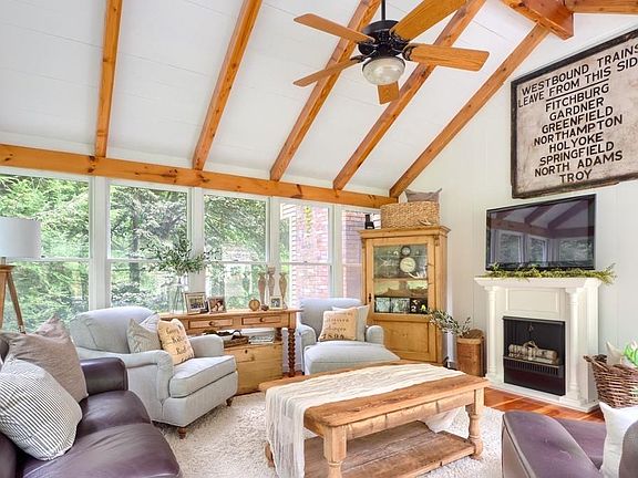 You don't want to miss this one! Charming Cape/Contemporary located on a quiet road with DCR land on 2 sides and easy highway access. Hardwoods and updated laminate flooring throughout the first floor. Plenty of space for a family and/or entertaining. Front to back family room with a slider leading to the back yard and open to the kitchen and breakfast area. Cozy up next to the fireplace in the living room or on the amazing 3 season porch that boasts a beamed, cathedral ceiling. The dining room, mudroom area, and 1/2 bath completes the first floor. The second floor is made up of 3 bedrooms and a full bath including a walk-in closet in the master bedroom. There is a second fireplace in the basement allowing great potential to refinish for extra space. Open House 9/8 and 9/9 11-12:30!