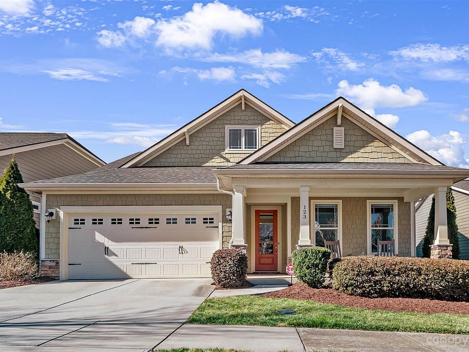 Former model home has been immaculately maintained and loaded with extras & upgrades - upscale lighting, large molding, garden tub & shower surrounded by tile, and stack stone foundation encompasses entire home. Upon entering the front door you are greeted by a wide foyer inviting you into an open/bright living space with gorgeous hardwoods. The impressive kitchen features an extra large granite island and stainless steel appliances. The two-sided gas fireplace brings warmth to both family room and sunroom. Off the sunroom is a covered patio with extended paver patio, overlooking open HOA space, to enjoy unmatched sunsets! Primary on main with trey ceilings & upgraded bath; completing the first floor are 2 additional BR's. Large upstairs loft area could be used as library, office, bonus room, or even an additional bedroom. Plenty of attic storage. Community features include: dog park, walking trail, community garden, and clubhouse with exercise room. Exterior painting by HOA.