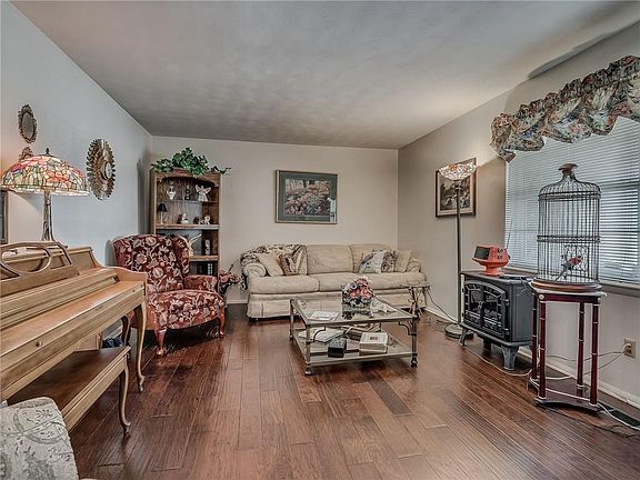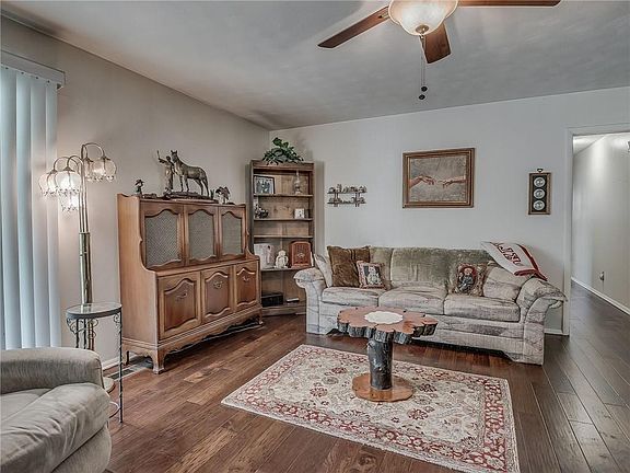 A true treasure in the heart of Moore, Oklahoma! This house features hickory hardwood floors with two living areas and a glass-enclosed front porch. The home has all original cabinetry and a built-in radio system/intercom. Sitting on a large corner lot, this property has two fenced backyards with pecan trees great for keeping pets on one side while entertaining on the other side with friends and family. A quiet neighborhood close to Moore schools, this home will surely be a treasure for your family.