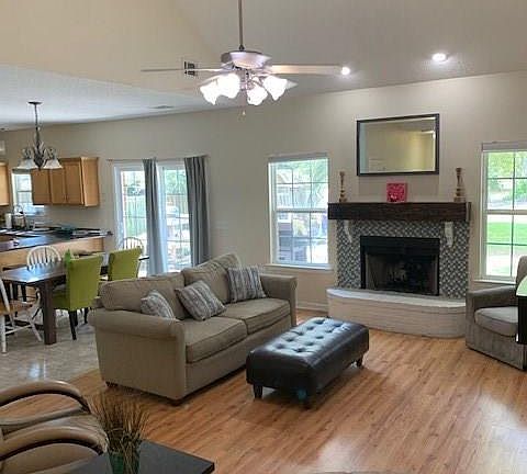 - Appliances: Dishwasher, Range/Oven, Refrigerator, Dryer, Microwave, Washer, Electric Water Heater, Fireplace
