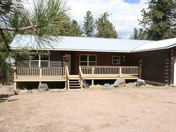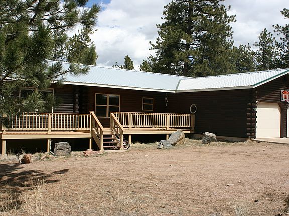 Attractive one-level log home nestled on 5.8 acres of beautiful pine forest. Located at the end of a culdesac, this tranquil setting allows for utmost privacy and serenity. Large Trex decks run the entire length of the home in both the front and back for ample room to entertain or simply relax. Inside, the living area is large and inviting with vaulted ceilings and plenty of windows to let in the light. The welcoming kitchen/dining room has plenty of seating at the table and counter top. A new coffee/tea bar with shelving has been added and also a sizable pantry. The split floor plan has the master bedroom on one side of the home and 2 other bedrooms and bath on the other side. A spacious master bedroom includes a full bath, a sizable walk-in closet, and french doors leading to the back deck. This home is well maintained inside and out. Recent updates include new carpet throughout, fresh paint and new lighting fixtures. A 2-car attached garage is finished and heated. Outside you will also find a nice sized dog run. Good year round access and only 12 miles from the town of Westcliffe. Adjoining lots are available to purchase separately. A warm & welcoming home!