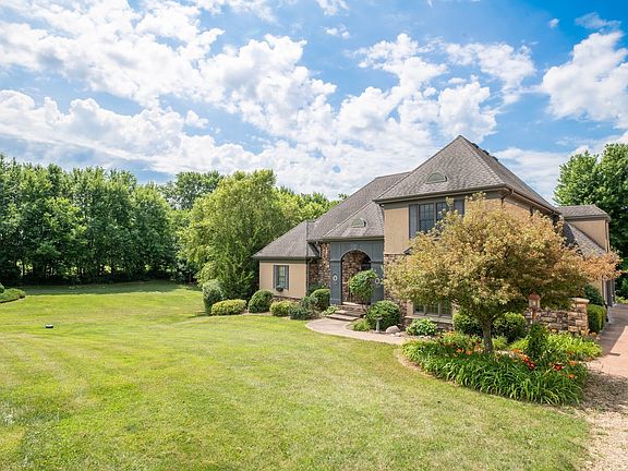 Step inside this incredible, one-of-a-kind, 2-sty lakefront property. The home greets you with a stone entryway, 2 story foyer and vaulted ceilings. The great room highlights a gas fireplace and opens to an informal dining room. Both rooms showcase an abundance of windows and access the deck overlooking the lake. The adjacent kitchen is equipped with stainless steel appliances, a double oven, granite countertops, pantry and breakfast bar. Enter the formal dining room and parlor through the kitchen or through the French doors off the foyer. The main floor primary bedroom/bathroom suite has its own private entry to the deck overlooking the lake, a large bathroom with soaker tub, walk-in shower, and generously sized walk-in closet. The upper level consists of 2 more bedrooms, a shared bathroom, loft area and a study. The finished walk-out basement includes a large family room, rec. room, wet bar, full bath, at least 1 additional bedroom and a few more bonus areas perfect for entertaining.