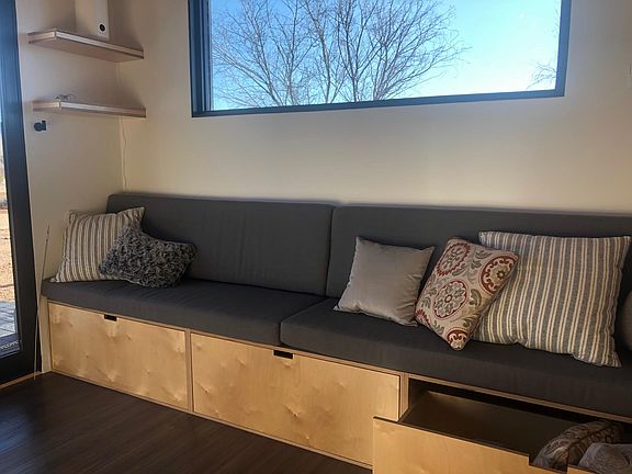 Contemporary casita! Clean minimalist design, modern aesthetic, mostly furnished. Small living at 432 Sq Ft, with high ceilings adding a spacious feel and ample storage to tuck everything away. 1 br/1 ba - Full bath with tub. Huge windows fill the home with light. European appliances, including indiction stove, electric oven, dishwasher and washer/dryer. Energy-efficient green building with bamboo hardwood floors and mini-split heat/AC system. Large deck and private fenced and landscaped yard - drip irrigation and space for your own gardening pleasure. Mountain views, steps from the Santa Fe River Trail. Walk daily along the river, or take an easy bike ride to downtown, outdoor pool, Co-op, and Meow Wolf. Off-street parking. Very quiet neighborhood. Perfect for one person. Furnishings include queen size bed with wonderful mattress, built-in couch with storage underneath, multi-functional table/desk that elevates to stand-up position, cooking equipment. Available June 5. One-year lease (will consider shorter lease with adjusted rent payment). Current tenant is very private, so out of respect for her showings will begin on June 1. If you're interested, please fill out application on Zillow, including credit and employment information. Be sure to tell me something about yourself and why you'd like to live here. All applications will be reviewed before June 1 and I'll get back to those who qualify to schedule a showing. Address is 123-A La Joya Rd; rear unit; private entrance on Del Rio Drive. If you are interested, you're welcome to check out the neighborhood, but please do not disturb current tenant - thanks for that consideration! Rent is $1,325, or $1500 with utilities included. First and last month's rent + $850 deposit due at signing. Sorry, no pets and no smoking.