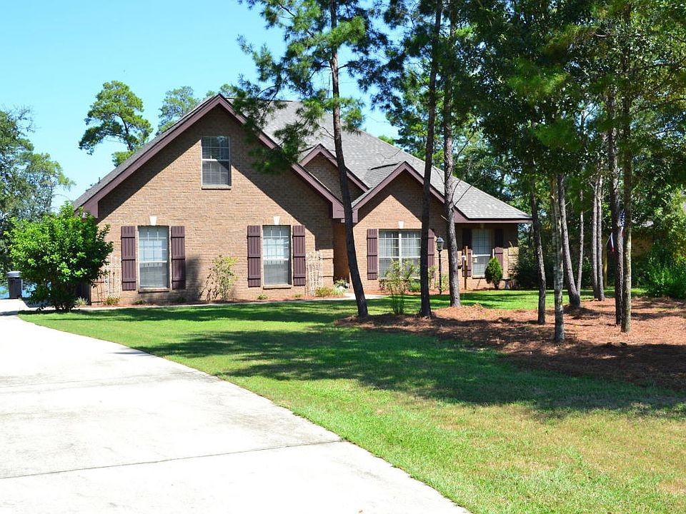 NOW IS THE TIME FOR your very own lake front home on the gorgeous spring fed Lake Merial. This 5 bedroom. 2.5 bath home is located on a one acre lot with 110 feet of waterfront directly on the lake. The interior of the home has great details such as raised ceilings, hardwood floors, granite counters, formal dining room as well as an eat in kitchen. The kitchen has abundant cabinet space, stainless appliances, a huge pantry, breakfast bar and breakfast area. The great room and kitchen both have views of the lake. The master bedroom also has a lake view and a master bath with a separate garden tub and shower, double granite topped vanity and a walk in closet. The laundry room is conveniently located next to the master. There are 3 more bedrooms on the first floor that share a full bath.