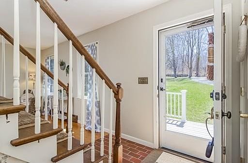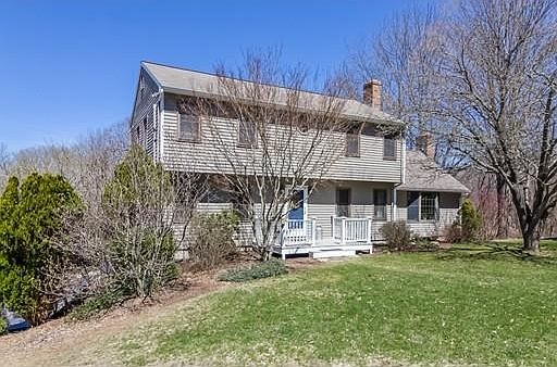 Youthful Classic Colonial with Modern Farmhouse appeal! Retreat to this private location on pastoral road on the Lebanon line, just a couple acres from the Airline Trail Access! Land borders 16 acre sportsman club with beautiful meadows and seasonal pond views. Versatile layout. Large Living Room addition with vaulted ceilings, built in cabinets, fireplace (wood) and loads of windows and light.. A First floor laundry room is tucked off the mudroom, as well as a first floor full bathroom. Large eat in kitchen with granite counters, breakfast bar, slider to deck. A family room is off the kitchen with propane fireplace. First floor office or family room could also be used as a formal Dining Room if such a room is desired. Upstairs find a large master with full bath and two additional bedrooms with another full bathroom. All baths are updated. A finished walkout basement has a 2 car garage and a rec room/ play room or additional home office/ school area. Newer deck railings, split AC system in place. Propane stove and fireplace. Rolling lawn with shed and plenty of yard area. Trees and stone walls border the front of the home offering much privacy and it is set back a distance from the road. This lovely private setting is just a few miles to town and Hebron Elem and RHAM schools.