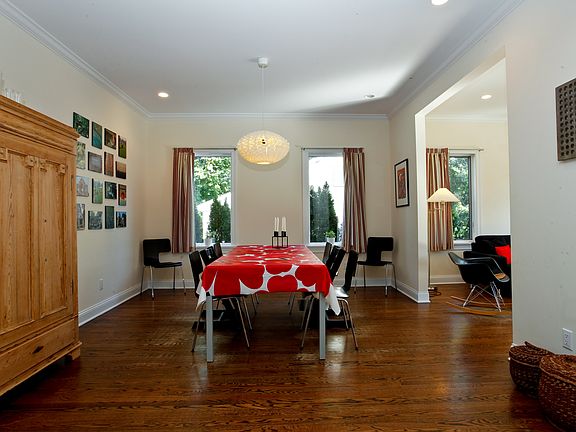A covered entry porch welcomes you to a delightful Tudor with lovely views and an easy-to-live-in open floor plan on the first floor. Quality construction with 9'ceilings, deep crown moldings, Viking appliances, granite kitchen counters, marble baths, custom cabinetry, hardwood floors, lawn sprinkler system, central vacuum and much more. Four nicely sized bedrooms. Two marble baths plus the powder room. Walk to train. A real gem!!