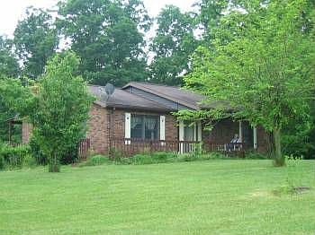 123 Liter Rd. Switz Co- Secluded 3BR, 2BA brick ranch on 6 ac wooded setting. Incl. full walkout bsmt, 24x32 pole barn, 2 car gar, more. $153,000
